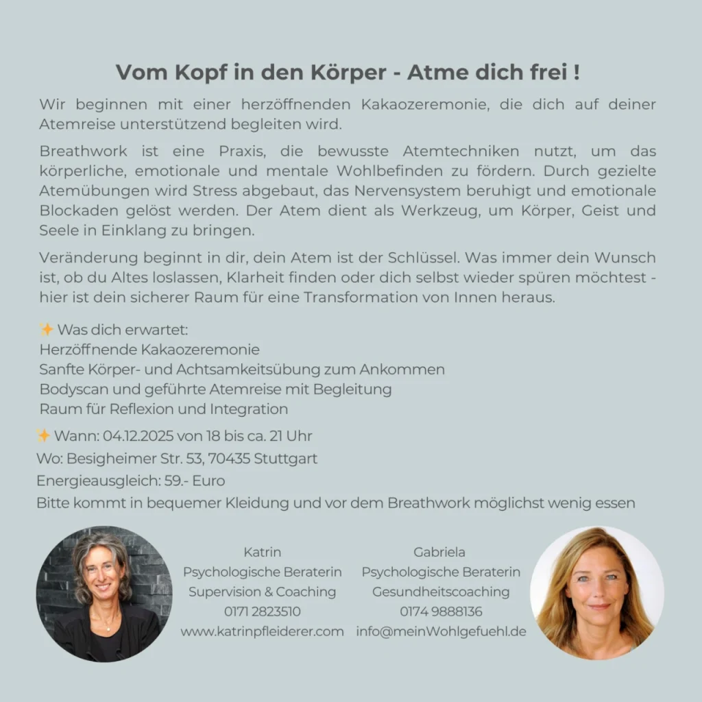 Vom Kopf in den Körper – Atme dich frei !
